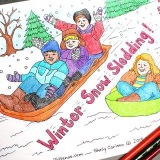 Go pull out the sled and take the grands sledding if you can. Then come inside, pour up the hot chocolate and color your Winter Snow Sledding Coloring Page with those grandkids. You can find a great hot chocolate recipe here!